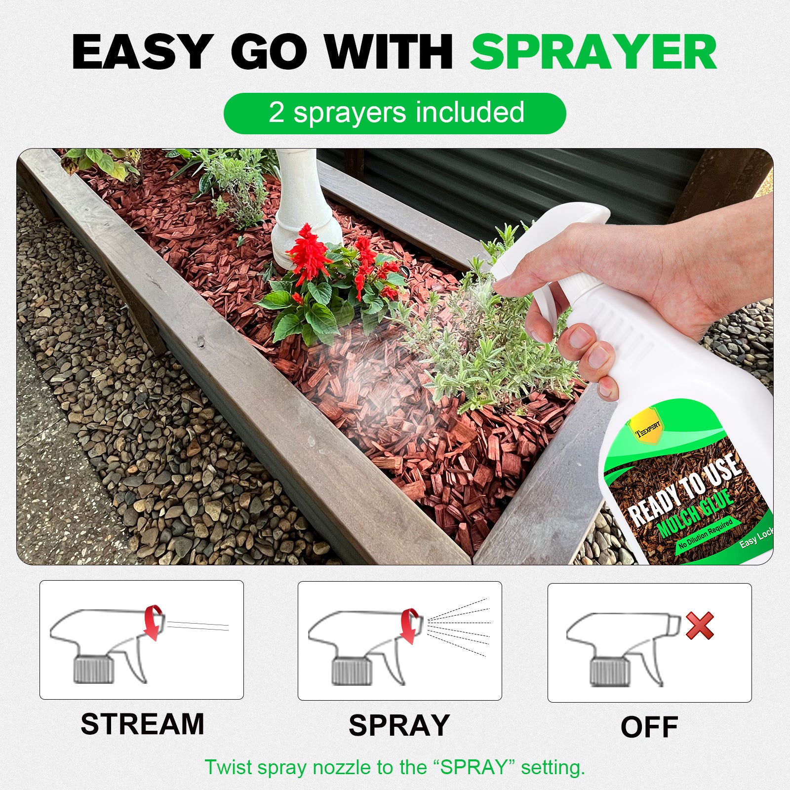 - 【27OZ】Spray & Stay, Ready-to-Use: Teexpert premixed mulch glue is your ultimate landscaping helper! No dilution is needed—just spray and go. Its built-in sprayer and easy-hold bottle make application quick and mess-free. Keep mulch, wood chips, pea gravel, and more firmly in place with a rock-solid, long-lasting bond. With Teexpert mulch spray glue, enjoy durable, efficient, and reliable landscaping solutions