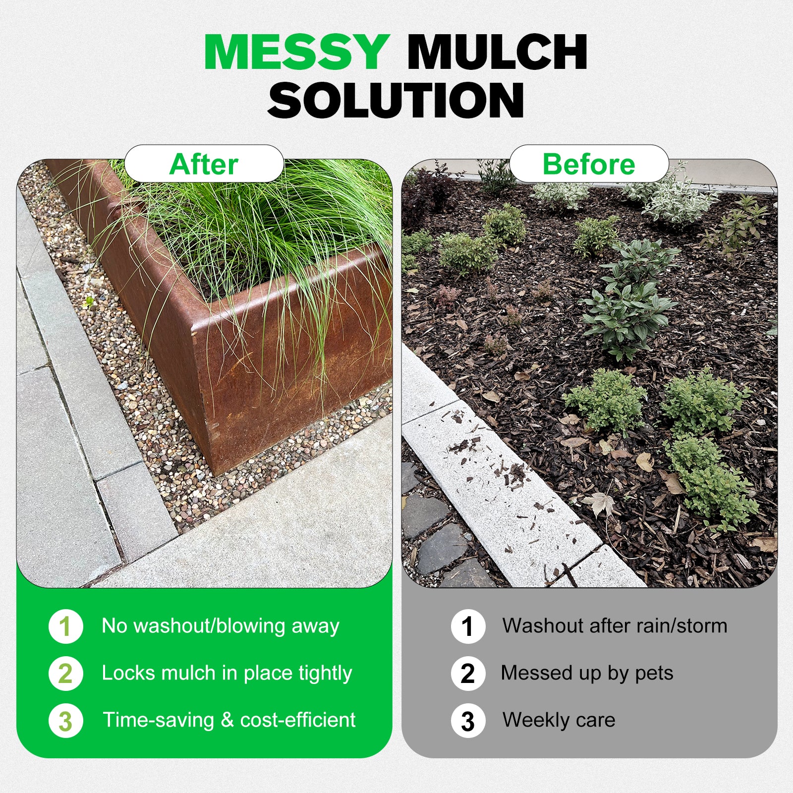 - One Glue, Endless Uses: Teexpert rubber mulch glue is the ultimate versatile solution for all your mulching needs! Its ready-to-use formula works seamlessly on a wide range of materials—from pea gravel(cypress mulch. Whether you're beautifying garden beds, lining pathways, or protecting tree roots, this mulch adhesive delivers reliable results every time