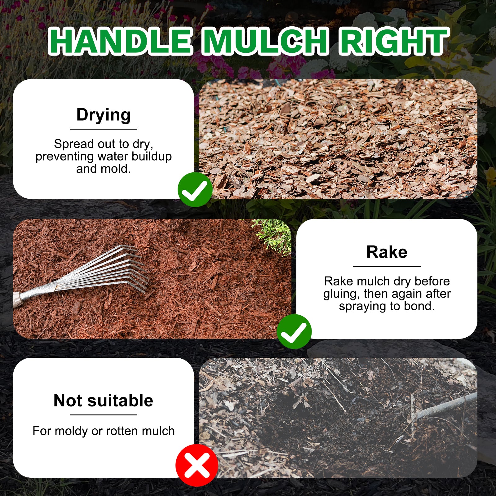 - WORKS FOR VARIOUS MULCHES: Teexpert mulch glue is the ultimate versatile solution for all your mulching needs! Its concentrated formula works seamlessly on a wide range of materials—from pea gravel and rubber mulch to pine straw, wood chips, and cypress mulch. Whether you're beautifying garden border, lining pathways, or protecting tree roots, this mulch lock delivers reliable results every time