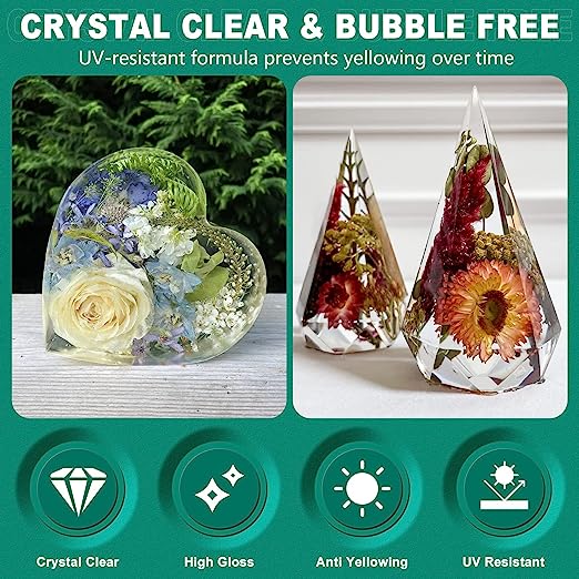 - đź’ŽCRYSTAL CLEAR & HIGH GLOSS: High-quality raw materials and a robust UV-resistant formula from Teexpert ensure unmatched transparency and prevent yellowing over time. Perfect for various resin art projects, such as jewelry making, coasters, key chains, pyramids, dominoes, serving trays, cutting boards, acrylic pour paintings, etc.