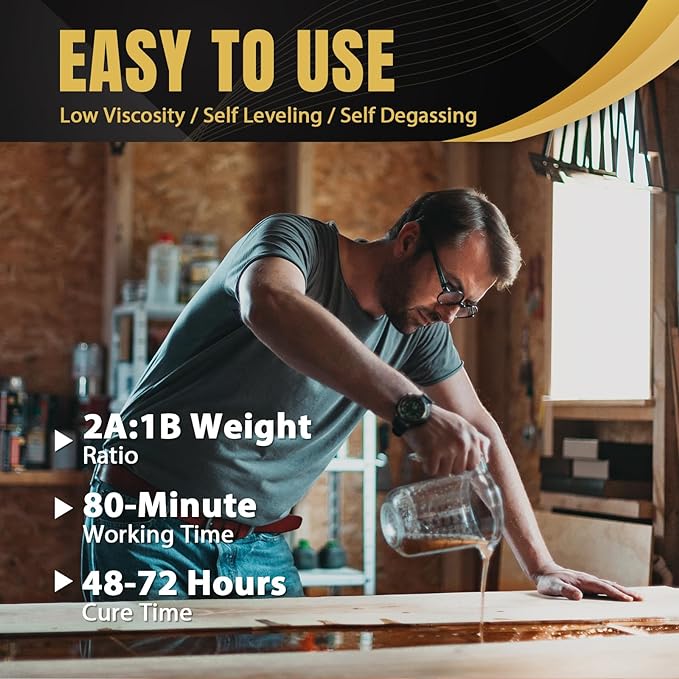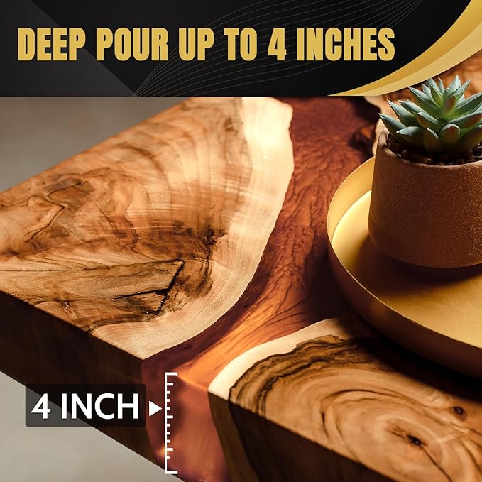 The low viscosity formula self-levels seamlessly, delivering a smooth finish. Blend with your favorite resin dyes for vibrant color explosions. Unleash your inner artist with Teexpert's 2024 Deep Pour Epoxy Resin Kit, designed to conquer ambitious projects!