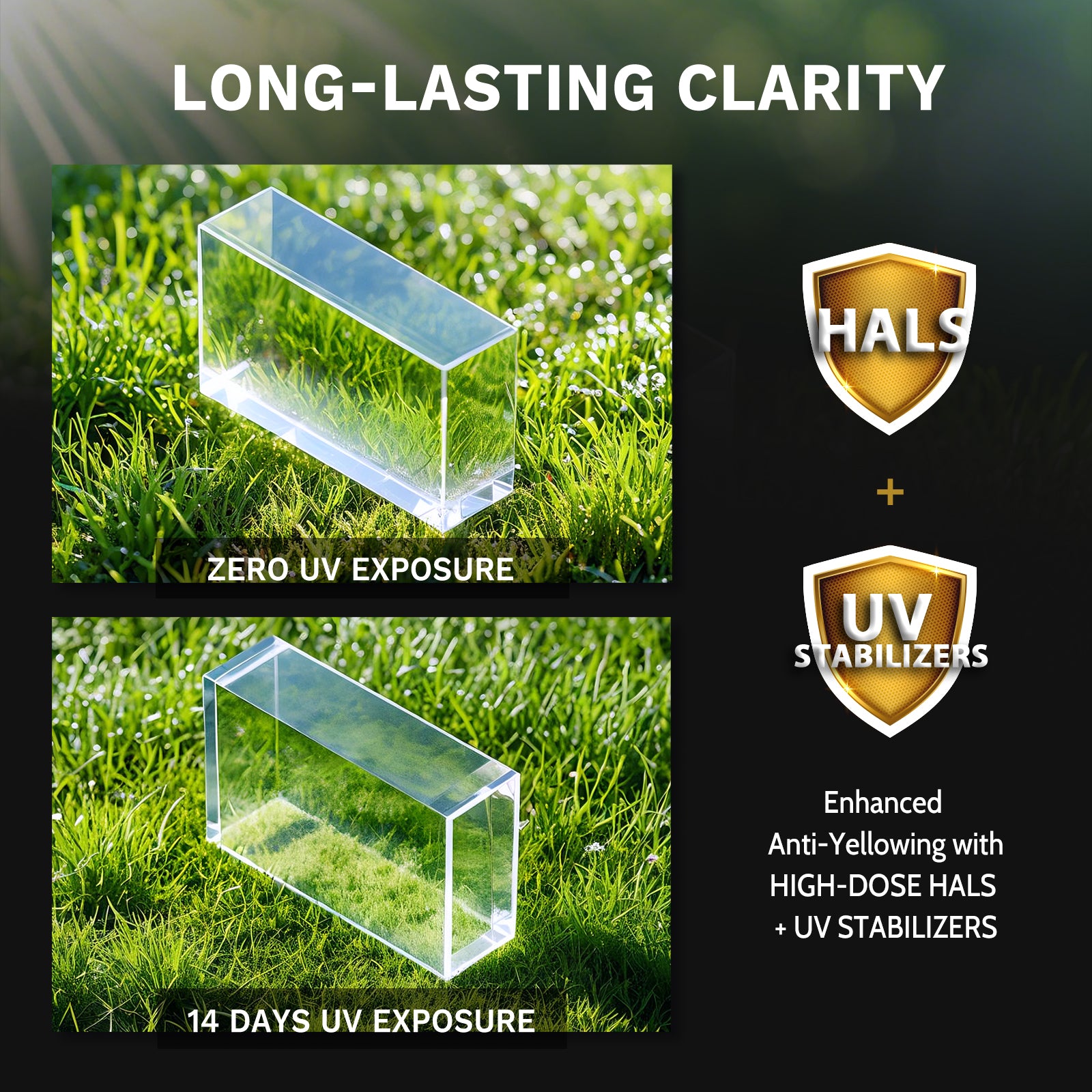 - Yellowing-Resistant: We have added advanced Hindered Amine Light Stabilizers (HALS) and UV stabilizers to resist yellowing, ensuring that your river table, built to last, stays shiny forever.